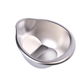 Transforme a preparação do seu arroz com esta peneira bowl em aço inoxidável de alta qualidade. Com 24 cm de diâmetro, ela possui saliências no fundo que removem o amido do arroz e impurezas de frutas e legumes de forma eficiente. Os furos de drenagem e o fundo inclinado facilitam o escoamento da água sem perder nenhum grão. Versátil para lavar arroz, grãos, legumes, frutas ou escorrer massas. Feito em aço inox 18/10 e com furo para pendurar, fica sempre à mão quando você precisa.