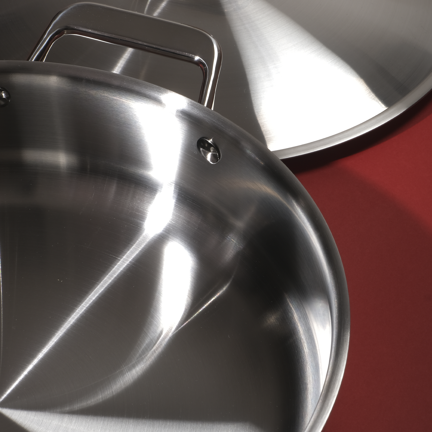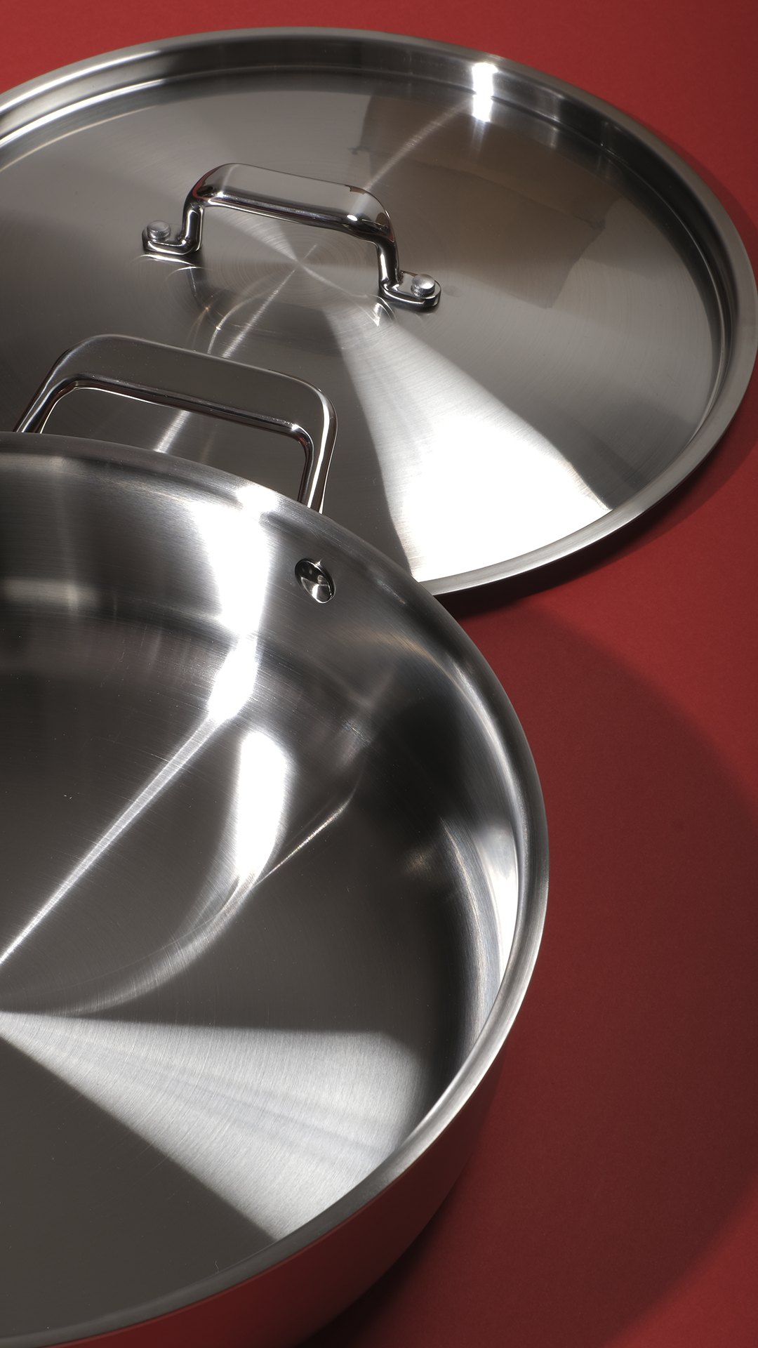 Nossa Sauté híbrida combina as laterais altas de um rondeau com a base ampla de uma sauté, oferecendo o equilíbrio ideal entre volume e área de contato. Seja para selar carnes, breasear ou fazer ensopados, ela garante distribuição uniforme de calor e máxima eficiência na cozinha.
